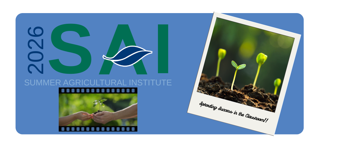 Learn more about how to incorporate agriculture into your classroom with this fun and engaging professional development opportunity! Each spring, sign up for an SAI near you by reaching out to the contact person listed in the brochure on this page.